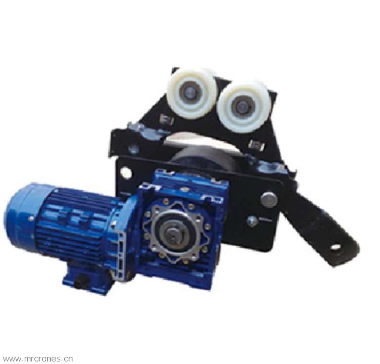 采用摩擦阻尼高的大直径摩擦轮盘型弹簧用恒定的压力挤压驱动轮,压在轨道的行走面上,通过牵引电机带动小车行走