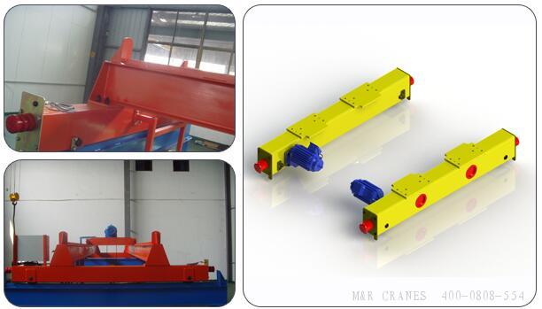 The whole set of end beams includes wheel/motor/photoelectric limit device/girder connecting plate/girder connecting bolt/head plate/buffer.