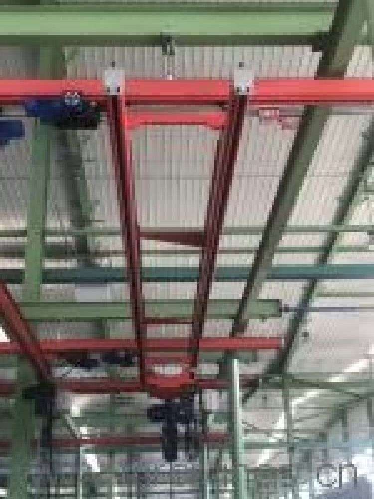 由悬挂装置、立柱、轨道、道岔、行走小车、电动葫芦、电驱、移动供电装置(滑线)以及控制装置等组件组合而成,起升装置主要采用