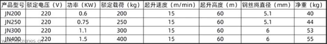 采用B级绝缘的卷扬机专用电动机,起动转柜大,惯性小,温升低,可长时间频繁使用。