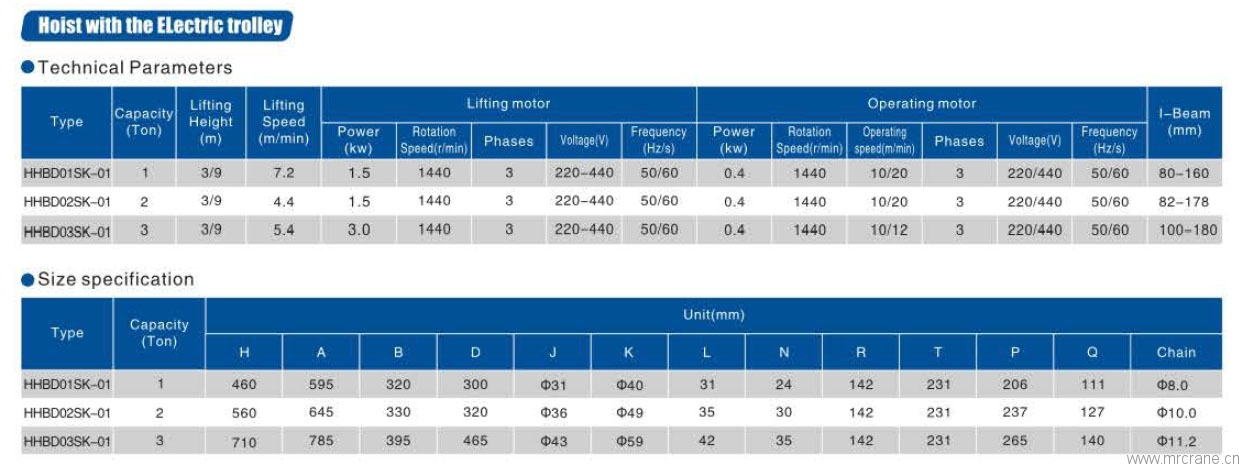 电机:旁磁制动电机,确保起吊安装可靠; 齿轮:20CrMnTi渗碳淬火工艺处理,齿面经磨削处理,低噪音,寿命持久; 链条:进口日本FEC ...